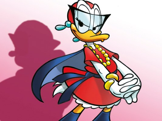 Μία από τις προσωπικά αγαπημένες εμφανίσεις της, και, νομίζω, η πρώτη μου επαφή με την ηρωίδα, ήταν ένα σύντομο guest στην ευρηματική και ξεκαρδιστική σειρά «Παπιομυστήριο»! Η Silvia Ziche, η κορυφαία, ίσως, γυναίκα δημιουργός κόμικς με τους ήρωες του Disney στην Ιταλία, δε δίστασε να χρησιμοποιήσει μία ηρωίδα που είχε πάνω από 20 χρόνια να εμφανιστεί σε ιστορίες στη χώρα της. Παρ’ όλα αυτά, τα -αντίθετα με τη φύση του χαρακτήρα- στερεοτυπικά κλισέ δεν έλειπαν, προερχόμενα όμως από μια γυναίκα δημιουργό, δεν μπορείς παρά να τα πάρεις χιουμοριστικά.