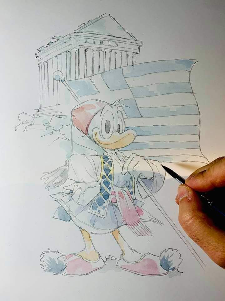 A.F.: Ο καθένας από μας βάζει το λιθαράκι του στον κόσμο του Ντίσνεϋ. Είναι όμορφο και ενθαρρυντικό να υπάρχουν νέοι καλλιτέχνες που συνεισφέρουν σε αυτό, τοποθετώντας ένα ακόμα τουβλάκι στον μεγάλο αυτό τοίχο. Έχουμε πολλούς νέους καλλιτέχνες που έχουν ήδη κατακτήσει ένα υψηλότατο επίπεδο. Όπως έλεγα πριν, οφείλουν να μάθουν πολύ καλά την παραδοσιακή ντισνεϋκή κληρονομιά, ειδικά την αμερικανική. Οι Ιταλοί έχουμε έναν πολύ ιδιαίτερο τρόπο αφήγησης, ο οποίος έχει αγαπηθεί σε όλον τον κόσμο – στην Ελλάδα, σε όλη την Ευρώπη, ακόμα και στην Αμερική και την Κίνα – όμως οι μεγάλοι δημιουργοί των προηγούμενων δεκαετιών, ’70-’80, ξεκίνησαν από τον Μπαρκς και τον Γκότφρεντσον. Γι’ αυτό θεωρώ πως και οι νεότεροι πρέπει να ξεκινήσουν από εκεί και να δούμε τι θα συμβεί. Αν έχουν σα σημείο αναφοράς τους σημερινούς δημιουργούς, θα είναι πολύ περιορισμένοι. Η επιστροφή στις ρίζες είναι πάντοτε αναζωογονητική.