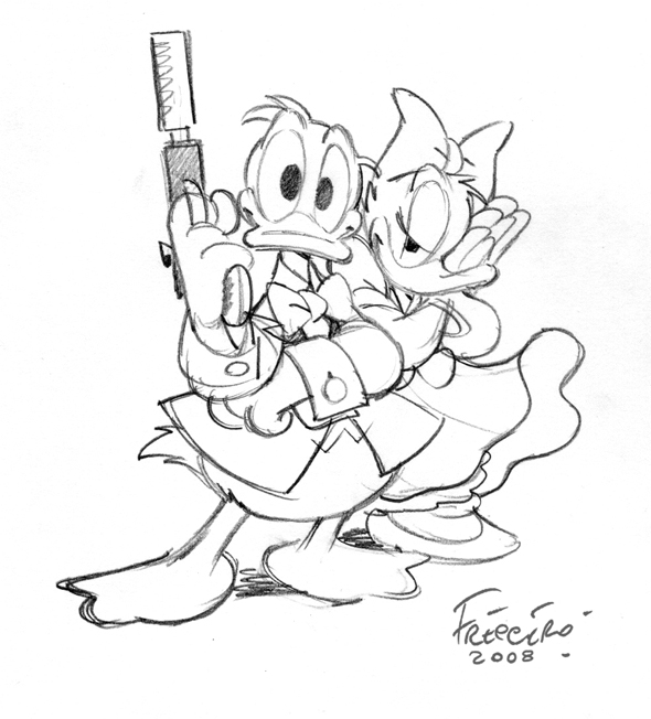 A.F.: Αυτή τη στιγμή ειλικρινά δεν αποκλείω τίποτα. Βρισκόμαστε σε μία φάση… ανακαίνισης των πάντων, προτείνονται διαρκώς νέες ιδέες, υπάρχουν ήδη πλάνα μέχρι το 2021, για να μπορούμε να δουλεύουμε με μεγαλύτερη ένταση αλλά ταυτόχρονα επιδιώκοντας διαρκώς να ανεβάζουμε την ποιότητα. Η δική μου δουλειά είναι να ανεβαίνει η ποιότητα από γραφιστικής άποψης. Ξέρω ότι πάνε 20 χρόνια που δεν υπήρχε αυτό το πόστο, συνεπώς πρόκειται για μία δύσκολη διαδικασία που ξεκίνησε από το σημείο 0. Παράλληλα ο νέος διευθυντής του Topolino, Alex Bertani, προσπαθεί να δώσει ώθηση στους σεναριογράφους για μια αντίστοιχη ποιοτική αναβάθμιση, αφού τα τελευταία χρόνια είχε παρατηρηθεί μία τάση ανακύκλωσης ιδεών και συχνά δημοσιεύονταν ιστορίες με σενάρια επιφανειακά και άγευστα. Φυσικά, το περιθώριο κινήσεων που έχουμε είναι αρκετά περιορισμένο, δεδομένου πως πρέπει να κινείσαι διαρκώς εντός των ορίων της Disney, και δεν προσφέρονται όλοι οι ήρωες για όλα, όμως υπάρχει η θέληση να καινοτομήσουμε – ακόμα κι αν αυτό σημαίνει να επιστρέψουμε στα παλιά. Ξεκάθαρα, οι χαρακτήρες στους οποίους αναφέρεσαι αποτελούν κομμάτι της μεγάλης ντισνεϋκής παράδοσης και θα ήταν επιπόλαιο να τους απορρίψει κανείς κατηγορηματικά.
