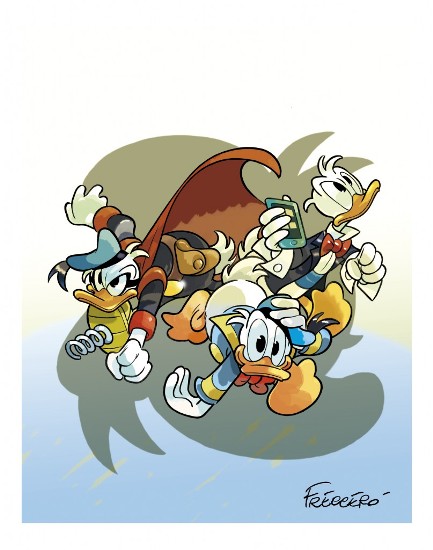 Andrea Freccero: Όπως μπορείς να καταλάβεις, σε έναν εκδοτικό οίκο που δουλεύει με… εικόνες, πόσω μάλλον σε έναν κολοσσό όπως η Disney, η εικόνα αποτελεί ένα καίριο στοιχείο, καθώς πρέπει να προσεγγίζεις το παραγόμενο προϊόν με έναν τρόπο που ανταποκρίνεται στο ντισνεϋκό σύμπαν. Αυτό είναι το βασικό σημείο αναφοράς στη δουλειά μας. Η αλήθεια είναι πως για πολλά χρόνια έλειπε μία τέτοια «φιγούρα» από την ιταλική ντισνεϋκή παραγωγή. Ο τελευταίος art director, γιατί περί αυτού πρόκειται, ήταν ο Marco Rota, αρκετά χρόνια πριν. Είναι μια πολύ μεγάλη ευθύνη, αφού πρέπει να οργανώσεις μία τεράστια παραγωγή ενός πολυπληθούς ανθρώπινου δυναμικού. Ευτυχώς έχουμε πάρα πολλούς επαγγελματίες υψηλότατου επιπέδου, συνεπώς υπάρχει ένα κανάλι επικοινωνίας ανάμεσα στη σύνταξη και τους συνεργάτες ικανό να δημιουργήσει ένα περιβάλλον δημιουργικό και πλήρες ερεθισμάτων για όλους μας. Ίσως πρόκειται για κάτι που απουσίαζε τα προηγούμενα χρόνια και ήταν αναγκαίο, και η Panini αποδείχθηκε ικανότατη στο να δημιουργήσει έναν καλλιτεχνικό χώρο αποκλειστικά για τους σχεδιαστές και τους σεναριογράφους όπου συναντιούνται και ανταλλάζουν απόψεις, νέες ιδέες, ένα βασικό στοιχείο της δημιουργίας νέων ιστοριών. Όταν μαζέψεις 10 δημιουργούς σε ένα δωμάτιο, αυτομάτως υπάρχει μια έκρηξη ιδεών.