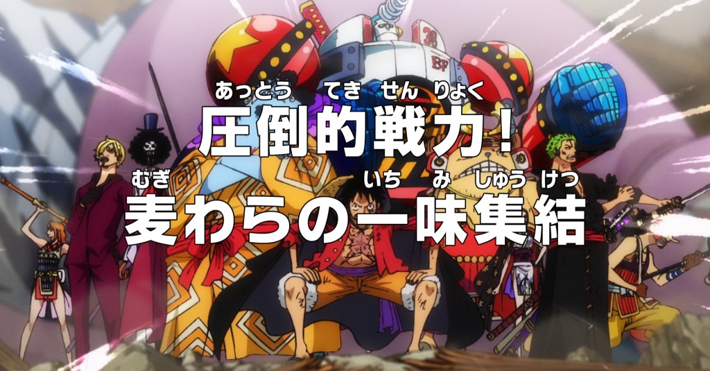 Στο χιλιοστό επεισόδιο της σειράς, βλέπουμε το πρωταγωνιστικό πειρατικό πλήρωμα σε πλήρη σύνθεση μετά από πολύ καιρό, έτοιμο να προκαλέσει χάος στους εχθρούς του και ρίγη συγκίνησης σε όσους παρακολουθούν. Άλλωστε, κάτι τέτοιο έχει να συμβεί από το επεισόδιο 553 στο Fishman Island, το 2012 – σχεδόν μία ολόκληρη δεκαετία! Ήταν λοιπόν μιας πρώτης τάξεως ευκαιρία να παρουσιάσουν με έντονα νοσταλγικό τρόπο κάθε μέλος του πληρώματος ξεχωριστά, θυμίζοντάς μας το παρελθόν του και την πορεία του στο πλευρό του Luffy και των υπολοίπων. Με την επίσημη προσθήκη του «Γιου της Θάλασσας» Jimbei, το πλήρωμα πλέον αριθμεί 10 μέλη, τα οποία έχουν περάσει από πολλές δοκιμασίες και πλέον θέτουν συνειδητά και αδιαμφισβήτητα τις δυνάμεις τους στην υπηρεσία του καπετάνιου τους και της φιλοδοξίας του να κυριαρχήσει στη θάλασσα.