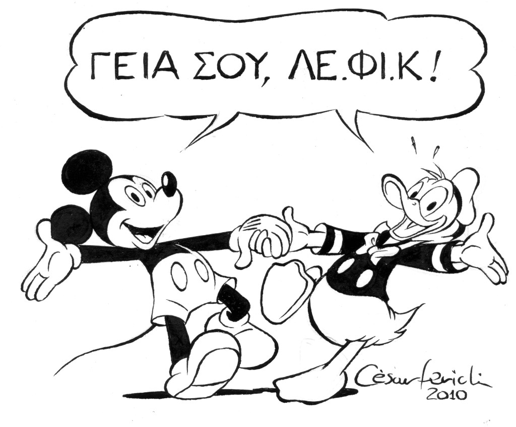 Cesar Ferioli: Σαν αναγνώστης, προτιμώ το σύμπαν των παπιών, χάρη στον Μπαρκς. Δυσκολεύομαι κάπως ν’ απαντήσω στην δεύτερη ερώτηση… Το βρίσκω εξίσου βολικό να σχεδιάζω όλους τους χαρακτήρες.