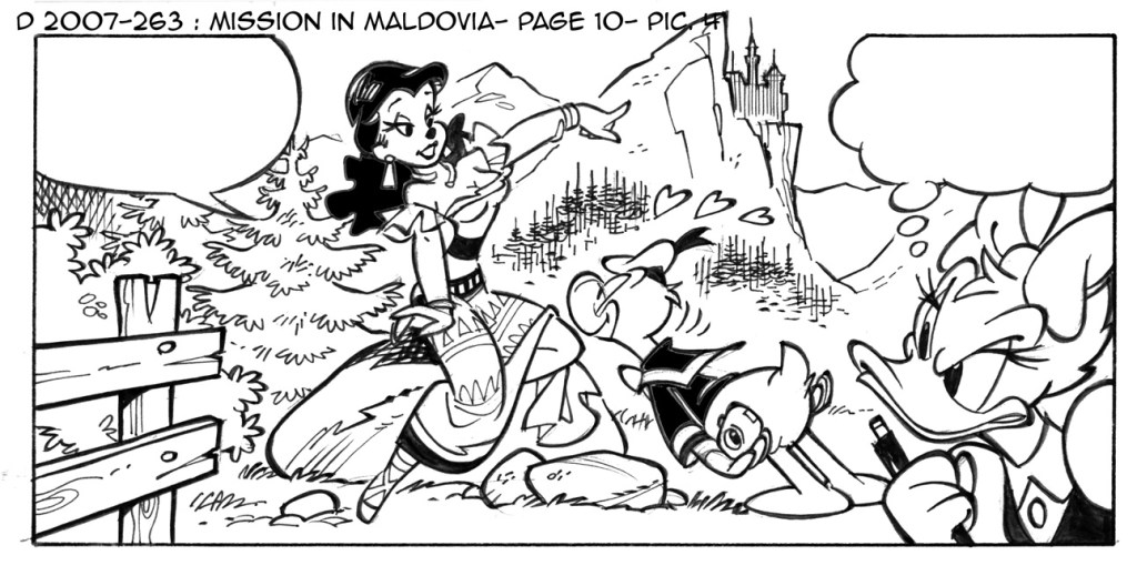 Massimo Fecchi: Όχι, απλά, ο λόγος που πήγα στην Egmont ήταν ότι δεν σχεδίαζα σχεδόν ποτέ για Ιταλούς εκδότες. Μιας και έθιξες το θέμα όμως, θα σου πω κάτι που δεν έχει γίνει ακόμη γνωστό: σχεδιάζω την πρώτη ιστορία συμπαραγωγής Egmont και Disney Italia. Το σενάριο είναι ιταλικό και η ιστορία πολύ διασκεδαστική.